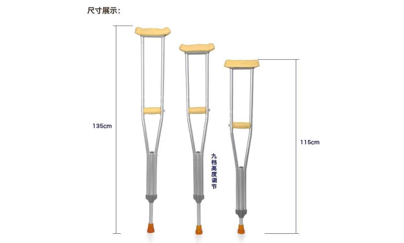 Πατερίτσες αλουμινίου με μπουτόν.Ρυθμιζόμενο ύψος από 1.15 έως 1.35m.Εξαιρετικά ανθεκτική κατασκευή, υψηλής ποιότηταςΔυνατότητα ρύθμισης του ύψους των χειρολαβών Ανατομικά υπομασχάλια και λαβές από μαλακό υλικό Αντιολισθητικά υποπόδια Μέγιστο βάρος χρήστη 100 Kg Διατίθενται ανά ζεύγος