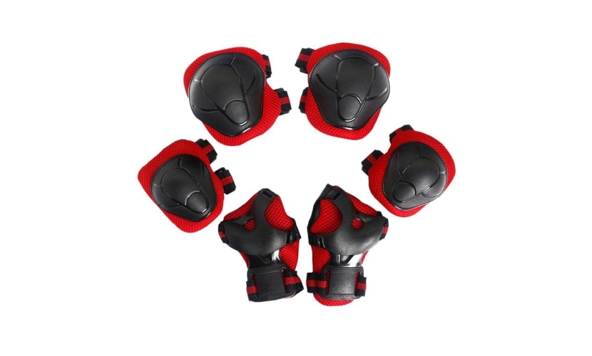 Πλήρες παιδικό σετ 6 τεμαχίων με προστατευτικά γονάτων, αγκώνων και καρπών, ιδανικό για κάθε είδους αθλητικές δραστηριότητες: ποδηλασία, skatebord, rollers, πατίνι, ομαδικά αθλήματα κτλ. Διαθέτουν σκληρό ανθεκτικό κάλυμμα που προστατεύει πλήρως από χτυπήματα και μαλακή εσωτερική επένδυση που απορροφά τους κραδασμούς και εφαρμόζει σταθερά και με άνεση, χωρίς ενοχλήσεις. Με ρυθμιζόμενα λουριά εφαρμογής. Περιλαμβάνονται: 2 Επιγονατίδες, 2 Επιαγκωνίδες, 2 Επικάρπια.