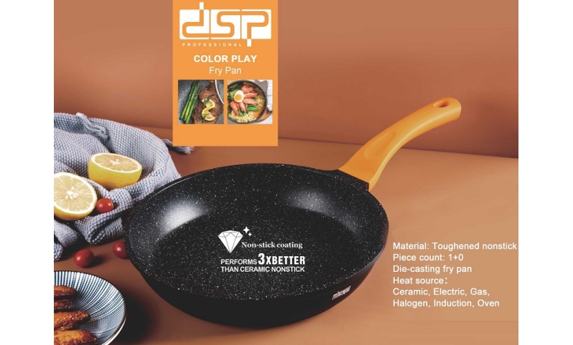 Αντικολλητικό τηγάνι υψηλής ποιότητας κατασκευής από την DSP, με ισχυρή αντικολλητική επίστρωση γρανίτη. Διαθέτει τεχνολογία άμεσης θέρμανσης και ομοιόμορφης κατανομής θερμότητας για ένα εύκολο και ποιοτικό μαγείρεμα.
