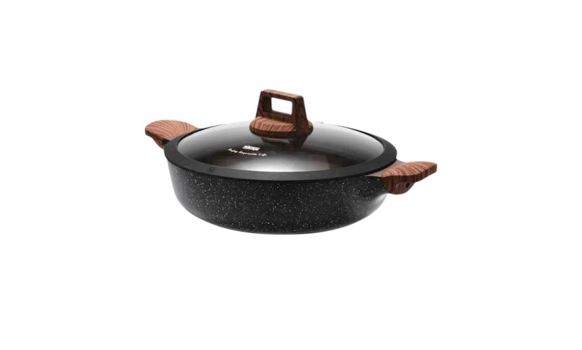 Ρηχή κατσαρόλα υψηλής ποιότητας κατασκευής από την DSP, με ισχυρή αντικολλητική επίστρωση και γυάλινο καπάκι. Διαθέτει τεχνολογία άμεσης θέρμανσης και ομοιόμορφης κατανομής θερμότητας για ένα εύκολο και ποιοτικό μαγείρεμα.