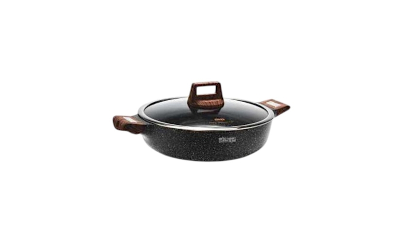 Ρηχή κατσαρόλα υψηλής ποιότητας κατασκευής από την DSP, με ισχυρή αντικολλητική επίστρωση και γυάλινο καπάκι. Διαθέτει τεχνολογία άμεσης θέρμανσης και ομοιόμορφης κατανομής θερμότητας για ένα εύκολο και ποιοτικό μαγείρεμα.