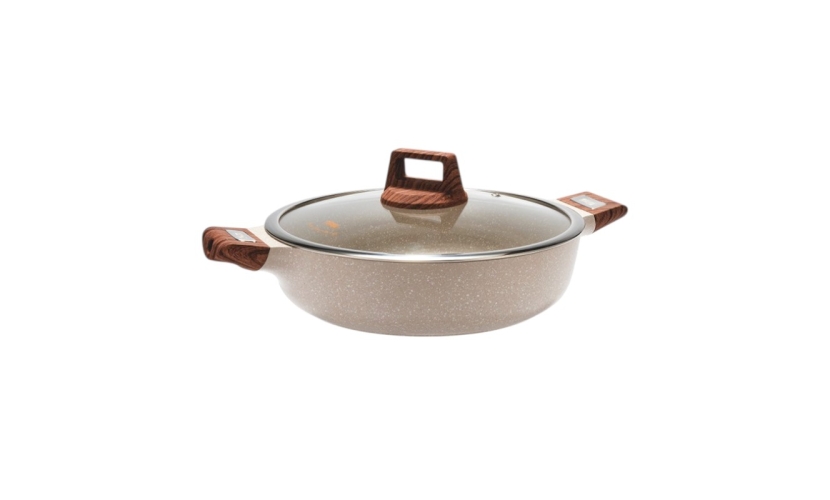 Ρηχή κατσαρόλα υψηλής ποιότητας κατασκευής από την DSP, με ισχυρή αντικολλητική επίστρωση και γυάλινο καπάκι. Διαθέτει τεχνολογία άμεσης θέρμανσης και ομοιόμορφης κατανομής θερμότητας για ένα εύκολο και ποιοτικό μαγείρεμα.