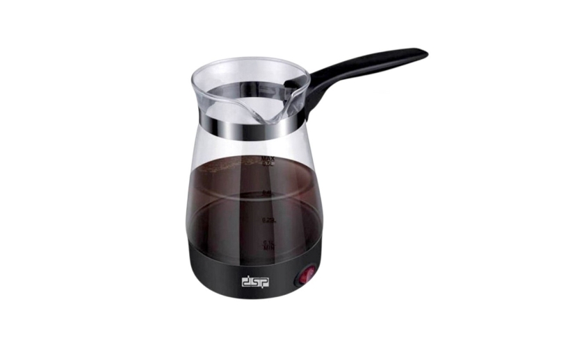 Γυάλινο ηλεκτρικό μπρίκι της DSP για ελληνικό καφέ και ζεστό νερό, εύχρηστο και πρακτικό, μεγάλης χωρητικότητας, για να έχετε άμεσα έτοιμο τον αγαπημένο σας ελληνικό καφέ ή να βράσετε νερό σε λίγα λεπτά.