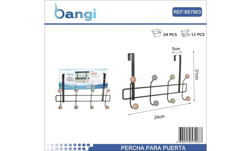 Μεταλλική κρεμάστρα πόρτας 4 θέσεων - 57903