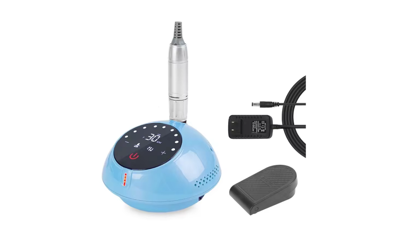 Επαγγελματικός τροχός νυχιών για μανικιούρ-πεντικιούρ με βάση στήριξης, με δεξιόστροφη και αριστερόστροφη λειτουργία και πεντάλ ποδιού. Διαθέτει ρυθμιζόμενη ταχύτητα, λειτουργία μειωμένου θορύβου και δονήσεων και εργονομικό σχεδιασμό για εύκολη και άνετη χρήση.