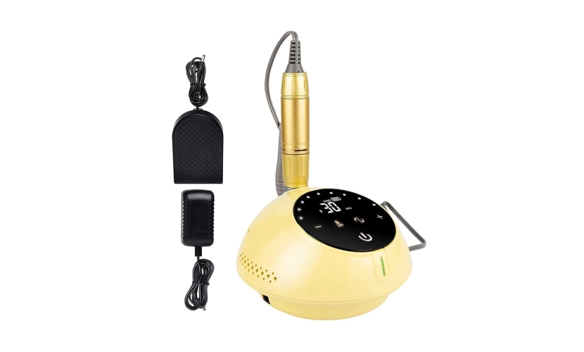 Επαγγελματικός τροχός νυχιών για μανικιούρ-πεντικιούρ με βάση στήριξης, με δεξιόστροφη και αριστερόστροφη λειτουργία και πεντάλ ποδιού. Διαθέτει ρυθμιζόμενη ταχύτητα, λειτουργία μειωμένου θορύβου και δονήσεων και εργονομικό σχεδιασμό για εύκολη και άνετη χρήση.