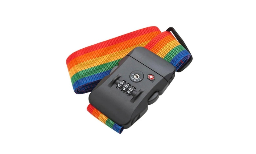 Ζώνη-ιμάντας ασφαλείας αποσκευών, σταυρωτός, με κωδικό ασφαλείας 3 ψηφίων και ρυθμιζόμενο μήκος.Μέγιστο μήκος: 2m.Πλάτος: 5cm.