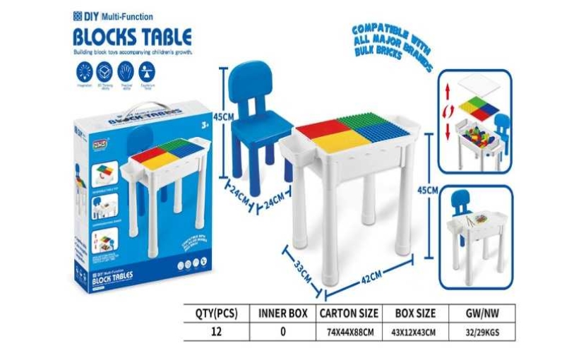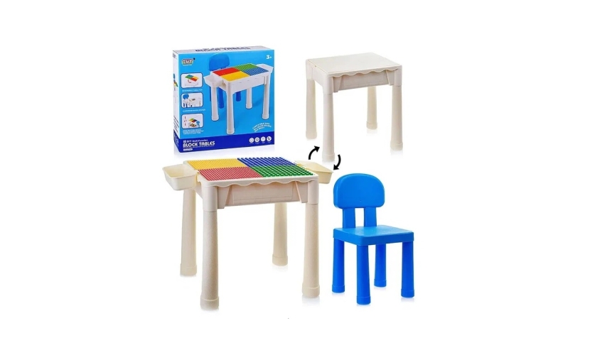 Παιδικός πάγκος με καρεκλάκι, ειδικός για κατασκευές με τουβλάκια και δραστηριότητες DIY.Συμβατός με όλα τα τουβλάκια γνωστών εταιρειών του εμπορίου.