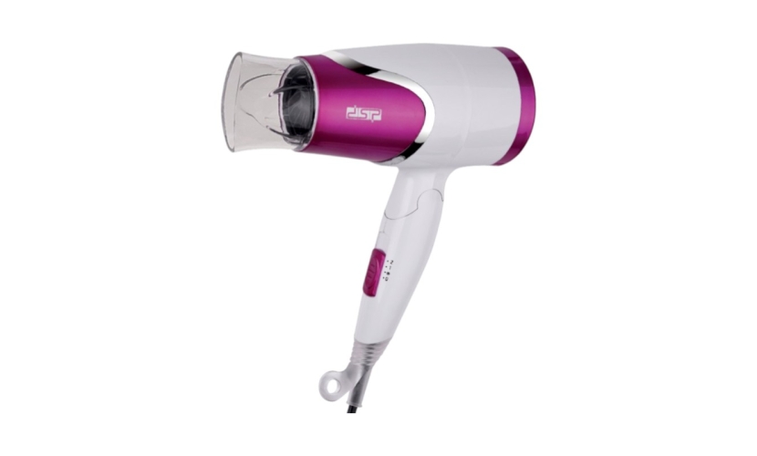Mini πιστολάκι μαλλιών της DSP με υψηλή απόδοση και δυνατή ροή αέρα για γρήγορο στέγνωμα. Με πτυσσόμενη λαβή και μικρό εργονομικό μέγεθος, ιδανικό για μεταφορά στα ταξίδια σας.