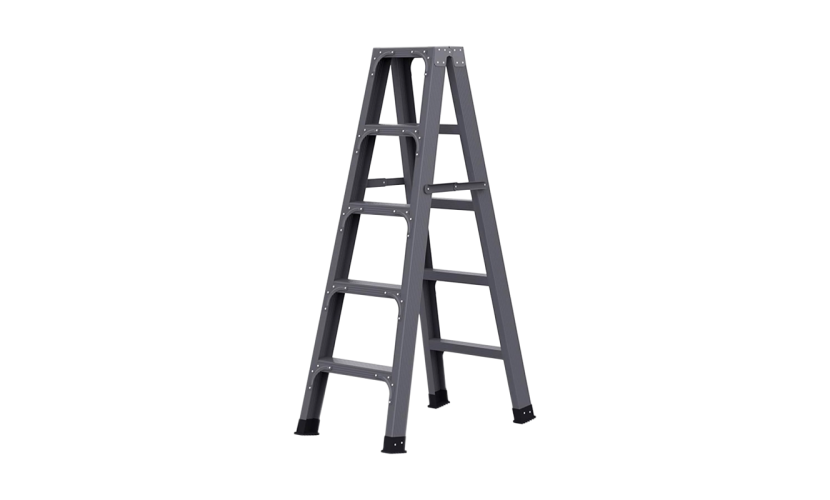 Πτυσσόμενη σκάλα 5 επιπέδων, με στιβαρή κατασκευή αλουμινίου, και εργονομική σχεδίαση για εύκολη χρήση και αποθήκευση.