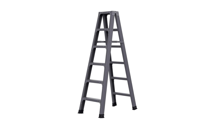 Πτυσσόμενη σκάλα 6 επιπέδων, με στιβαρή κατασκευή αλουμινίου, και εργονομική σχεδίαση για εύκολη χρήση και αποθήκευση.