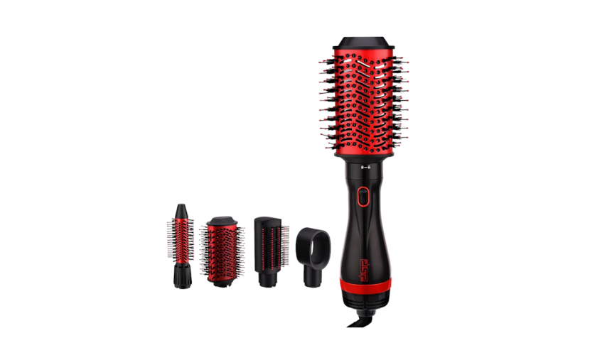 Ηλεκτρική βούρτσα μαλλιών της DSP 5 σε 1, που στεγνώνει, χτενίζει, φορμάρει και ισιώνει τα μαλλιά σας σε ελάχιστο χρόνο με τη δύναμη του αέρα, προστατεύοντάς τα παράλληλα από τη φθορά της θερμότητας, αφήνοντας ένα λείο, λαμπερό αποτέλεσμα. Ο εργονομικός σχεδιασμός της με περιστρεφόμενο καλώδιο τροφοδοσίας προσφέρει μεγαλύτερη ευχέρεια κινήσεων κατά το χτένισμα. Στη συσκευασία περιλαμβάνονται 5 εξαρτήματα για στέγνωμα, χτένισμα και ίσιωμα. Ένα επαγγελματικό πολυεργαλείο μαλλιών που θα σας προσφέρει αποτέλεσμα κομμωτηρίου στην άνεση του σπιτιού σας!