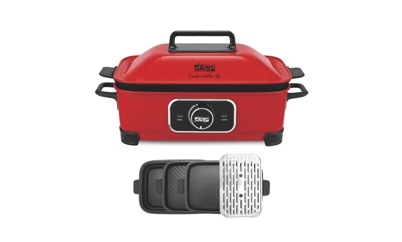 Ηλεκτρική κατσαρόλα μαγειρέματος - Multicooker 4 σε 1 που ψήνει, βράζει σε νερό ή στον ατμό, τηγανίζει και μαγειρεύει οτιδήποτε επιθυμείτε. Ένα πρακτικό πολυεργαλείο κουζίνας που θα σας λύσει τα χέρια στο καθημερινό μαγείρεμα, χωρίς να χρειαστεί να χρησιμοποιείτε την ενεργοβόρα κουζίνα σας. Ισχύς 1400W, Καπάκι αλουμινίου, 4 αντικολλητικές κεραμικές πλάκες μαγειρέματος, Υλικό θέρμανσης: Χυτό αλουμίνιοΕλεγχόμενη θερμοκρασία: 60-230 °CΔιαστάσεις (χωρίς το καπάκι): 41 x 24,5 x 8cm, Αφαιρούμενες πλάκες για εύκολο καθάρισμα, Προστασία από υπερθέρμανση,Αξεσουάρ: 1 βαθύ ταψί, 1 σχάρα ατμού από ανοξείδωτο ατσάλι, 1 γκριλ, 1 ίσια πλάκα.