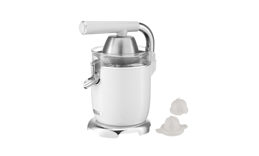 Ηλεκτρικός στίφτης της DSP με λαβή για εύκολη πίεση και βρυσάκι εξαγωγής του χυμού απευθείας στο ποτήρι σας. Υψηλής απόδοσης, πρακτικός και εύχρηστος για να έχετε καθημερινά γρήγορα και χωρίς κόπο τον αγαπημένο σας χυμό πορτοκαλιού, λεμονιού κα. Διαθέτει 2 κώνους στυψίματος διαφορετικού μεγέθους για μικρότερα και μεγαλύτερα φρούτα.
