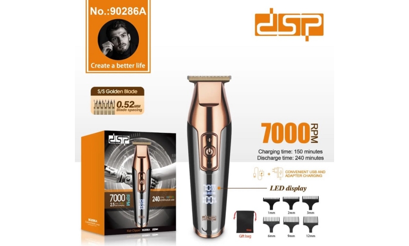 Χαρακτηριστικά: Ισχύς: 5W, Ταχύτητα 7000 RPM, Ψηφιακή οθόνη ένδειξης μπαταρίας LED, Λειτουργία χαμηλού θορύβου, Επαναφορτιζόμενη μπαταρία, Χρόνος φόρτισης: 2.5 ώρες, Χρόνος λειτουργίας: έως 240 λεπτά, 6 χτενάκια για διαφορετικά μήκη κοπής (1/2/3/6/9/12mm).