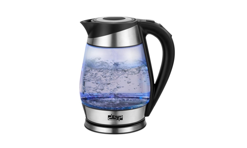 Ηλεκτρικός βραστήρας της DSP, υψηλής ισχύος και άμεσης θέρμανσης, με πρακτικό διαφανή σχεδιασμό και δυνατότητα επιλογής θερμοκρασίας.