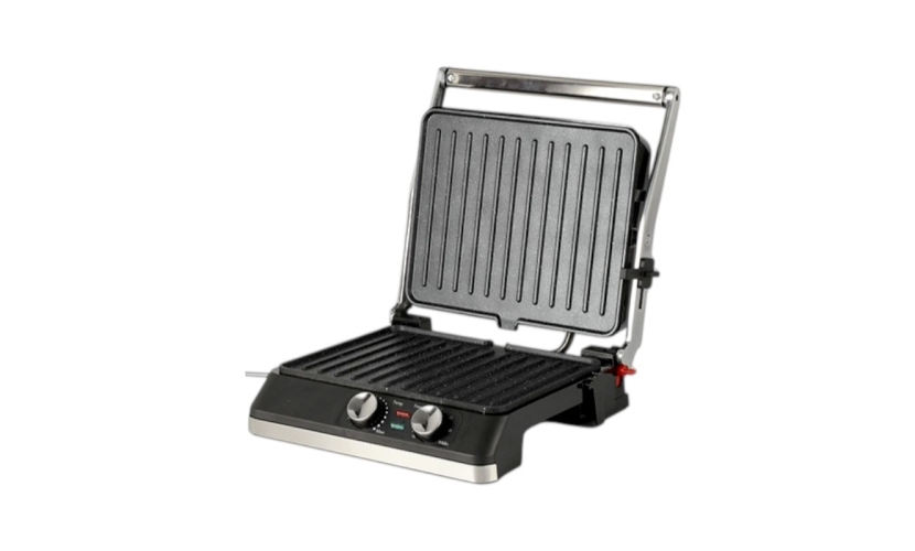 Χαρακτηριστικά: Χωρητικότητα: 4 Τοστ, Τάση: 220-240V~50/60Hz, Ισχύς: 2200W, Ενισχυμένη αντικολλητική επίστρωση, Ρυθμιζόμενη θερμοκρασία,Χρονόμετρο έως 30minΓωνία ανοίγματος: 105° & 180°Διαστάσεις πλάκας: 29 x 24cm, Συνολικές διαστάσεις: 30 x 30 x 16cm, Χειρολαβή με θερμομόνωση - Cold touch 430 stainless steel, Φωτεινή λυχνία ένδειξης ενεργοποίησης και ετοιμότητας,Αφαιρούμενος συρταρωτός συλλέκτης,Κλείδωμα πλακών,Προστασία υπερθέρμανσης, Αντιολισθητικά πατάκια βάσης.