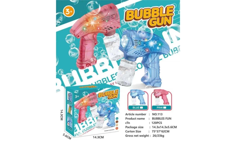 Με αυτό το πιστόλι σε υπέροχο σχεδιασμό, μπορείς να γεμίσεις τον χώρο με εκατοντάδες σαπουνόφουσκες στο λεπτό! Απλά τοποθέτησε το δοχείο με το ειδικό σαπούνι στη θήκη του και με το πάτημα ενός κουμπιού δημιούργησε πανεύκολα ατελείωτες φούσκες που θα ξετρελάνουν εσένα και τους φίλους σου!