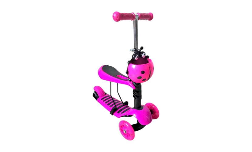 Διαθέτει αφαιρούμενο κάθισμα και πλαστικό καλαθάκι αποθήκευσης στο μπροστινό μέρος με σχέδιο πασχαλίτσα.Διαθέτει πολύχρωμο φωτισμό LED στις ρόδες κατά την κίνηση.