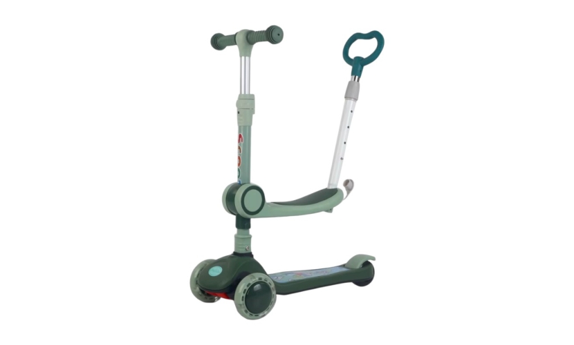 Διαθέτει κάθισμα και ενσωματωμένη χειρολαβή για τον γονέα με ρυθμιζόμενο ύψος. Διαθέτει πολύχρωμο φωτισμό LED στις ρόδες κατά την κίνηση.