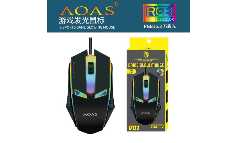 To ποντίκι Aoas V01 είναι ένα gaming ποντίκι σχεδιασμένο και για τα δύο χέρια, με οπτικό αισθητήρα και ανάλυση 2400 DPI. Διαθέτει 3 κουμπιά και φωτισμό RGB που μπορεί να πάρει διάφορες αποχρώσεις.
