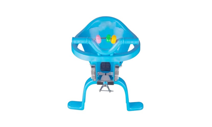 Παιδικό πλαστικό κάθισμα ποδηλάτου, με δυνατότητα ασφαλούς τοποθέτησης είτε πίσω από τη σέλα, είτε μπροστά στο τιμόνι χάρη στα ατσάλινα στηρίγματα και την ειδική βάση. Διαθέτει μαλακή επένδυση στο κάθισμα, ανατομική πλάτη, χειρολαβές, στήριγμα ποδιών και παιχνίδι στο μπροστινό μέρος.Βάρος αντοχής: έως 12 κιλά