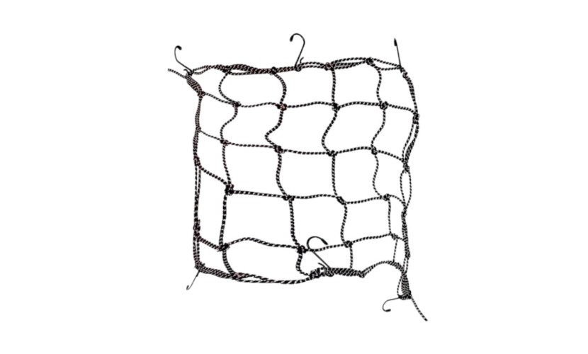 Ελαστικό Δίχτυ Αποσκευών μοτοσυκλέτας & ποδηλάτου, με εργονομικό σχεδιασμό και κατασκευή υψηλής ανθεκτικότητας, που διατηρεί το κράνος ή τα μεταφερόμενα αντικείμενα σταθερά στη σχάρα ή στο ντεπόζιτο. Ισχυρή νάιλον ίνα με πυρήνα λατέξ. Με ενισχυμένα στριφώματα. Με 6 άγκιστρα.