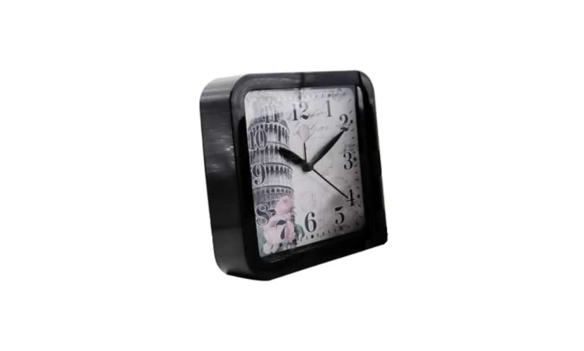 Επιτραπέζιο ρολόι-ξυπνητήρι με μοντέρνο σχεδιασμό και τύπωμα στο καντράν.