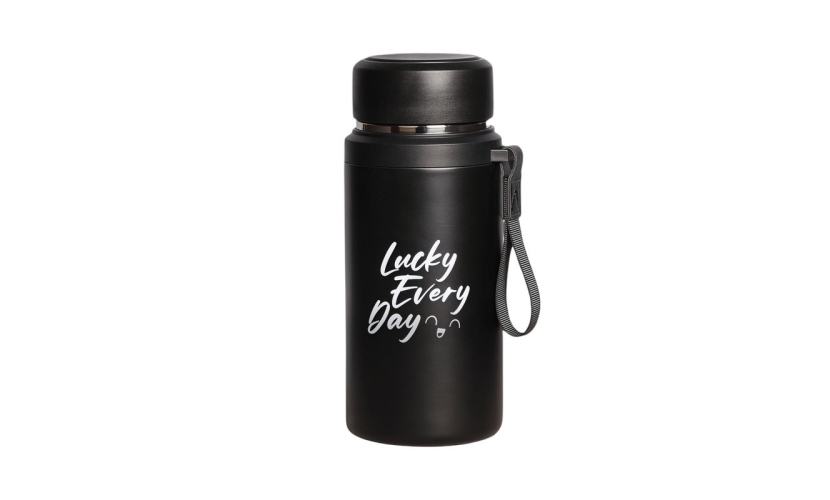 Φορητό παγούρι-θερμός με εσωτερικό από 100% ανοξείδωτο ατσάλι, διπλά τοιχώματα και περίβλημα υψηλής ανθεκτικότητας που διατηρεί τη θερμοκρασία του περιεχομένου σταθερή για ώρες. Το ανοξείδωτο ατσάλι εξασφαλίζει μεγάλη αντοχή στο χρόνο και απόλυτα υγιεινή χρήση χωρίς τις τοξικές ουσίες που περιλαμβάνουν τα κοινά πλαστικά παγούρια. Δεν απορροφάει γεύσεις και μυρωδιές. Διαθέτει βιδωτό καπάκι Vacuum και σίτα εκχύλισης. Εργονομικός σχεδιασμός με λαβή για εύκολη μεταφορά και αντιολισθητικό πάτο. Πλένεται πολύ εύκολα.