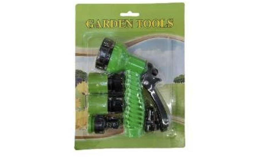 Πιστόλι ποτίσματος για λάστιχο με ρυθμίσεις πίεσης και ταχυσυνδέσμους. Εργονομική λαβή, με σκανδάλη και κατασκευή υψηλής ανθεκτικότητας. Σετ 5 τεμαχίων.