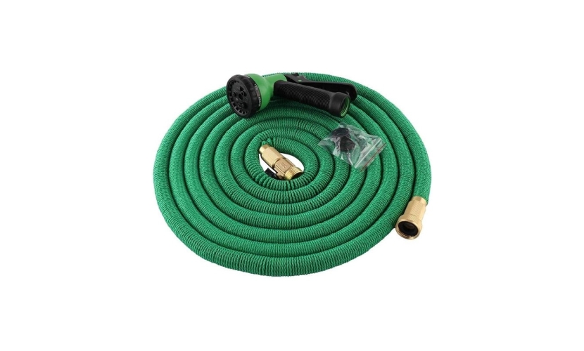 Λάστιχο ποτίσματος που επεκτείνεται αυτόματα με την ροή του νερού όταν ανοίξετε τη βρύση και συρρικνώνεται σταδιακά στο αρχικό του μέγεθος, όταν την κλείσετε, καταλαμβάνοντας ελάχιστο χώρο. Ιδιαίτερα ανθεκτικό και εύκολο στη χρήση, δεν τσακίζει και δεν στρίβει. Διαθέτει πιστόλι με διαφορετικές λειτουργίες. Μήκος: 37m σε πλήρη έκταση, 7.5m μαζεμένο.