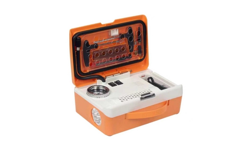 Φτιάξτε το λάστιχο του αυτοκινήτου σας ή της μηχανής σας επιτόπου, γρήγορα και αποτελεσματικά με αυτό το πλήρες σετ επιδιόρθωσης ελαστικών με ενσωματωμένο compressor ισχυρής παροχής 25Lt/m.