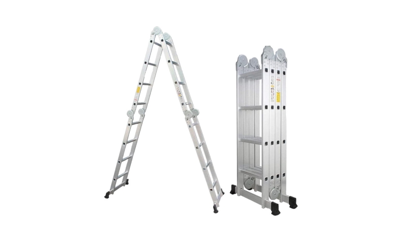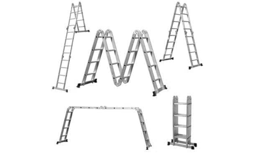 Πτυσσόμενη πολυμορφική σκάλα με στιβαρή κατασκευή αλουμινίου, και εύκολη αποθήκευση. Συνολικό μήκος: 4.7m.