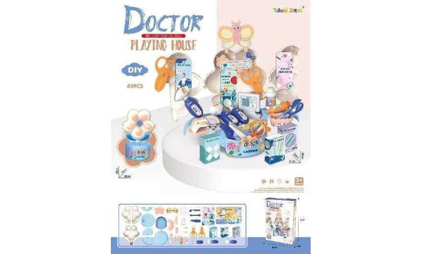 Σετ ιατρικής σε υπέροχο σχεδιασμό με πολλά αξεσουάρ, σε πανέμορφο, πρακτικό βαλιτσάκι μεταφοράς που μετατρέπεται πανεύκολα σε επιτραπέζια βάση παιχνιδιού.