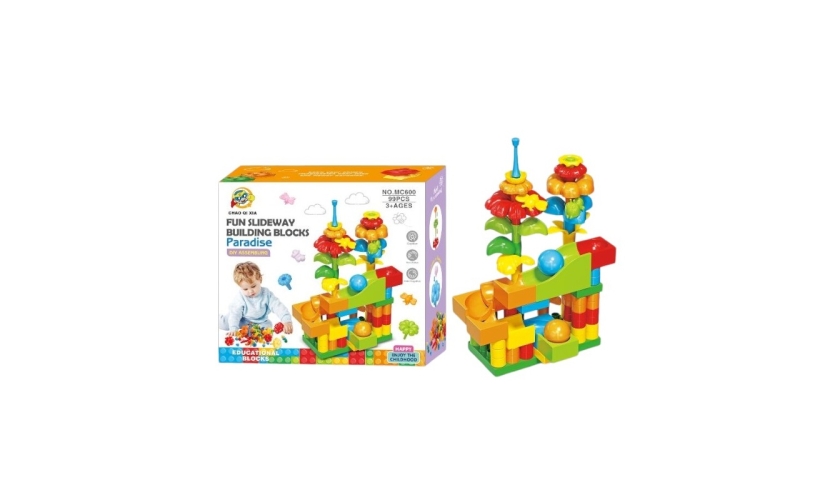 Συναρμολογούμενη πίστα DIY με τουβλάκα και τσουλήθρα με μπαλάκια που κάνουν τρελά κόλπα, για ένα ατελείωτο δημιουργικό παιχνίδι!
