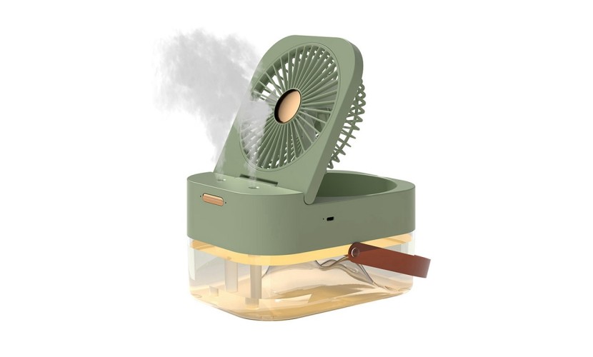 Χαρακτηριστικά-Λειτουργίες: Πτυσσόμενος ανεμιστήρας με ρυθμιζόμενη κλίση. Χωρητικότητα δοχείου νερού: 2,5L. Διάρκεια ψύξης με ένα γέμισμα: από 6 έως 10 ώρες (ανάλογα με την ταχύτητα). 3 ταχύτητες έντασης αέρα (υψηλή, μεσαία, χαμηλή).Χρονοδιακόπτης από 1 έως 6 ώρες. Λειτουργία Spray για έξτρα ύγρανση. Μπορείτε να προσθέσετε πάγο στο δοχείο για ενισχυμένη ψύξη και μείωση θερμοκρασίας του χώρου έως και -5°C. Μπορείτε ακόμη να προσθέσετε αρωματικό υγρό για αρωματισμό του χώρου σας μέσω του spray. Φωτισμός LED. Χαμηλός θόρυβος. Χειρολαβή μεταφοράς. Αφαιρούμενα εξαρτήματα για εύκολο καθάρισμα. Τροφοδοσία με καλώδιο USB Type-c, 1.5m (περιλαμβάνεται), μπορεί να συνδεθεί σε αντάπτορα πρίζας, Powerbank, Η/Υ κα.Power: 10W. Κάλυψη χώρου έως και 10τμ. Διαστάσεις συσκευής: 22 x 12.5 x 16cm. Υλικό: πλαστικό ABS.