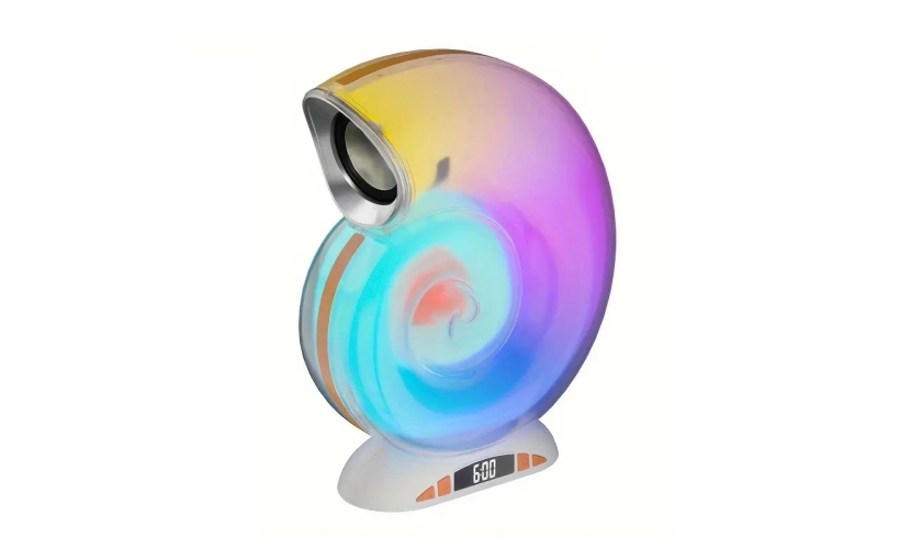 Ασύρματο ηχείο Bluetooth σε εντυπωσιακό σχεδιασμό κοχύλι, με φωτισμό LED και μοντέρνο design που μπορεί να λειτουργήσει και σαν διακοσμητικό χώρου, ενώ με τον πολύχρωμο φωτισμό του δημιουργεί μία μαγική ατμόσφαιρα. Μπορείτε να προσαρμόσετε τα χρώματα φωτισμού ώστε να δημιουργήσετε το δικό σας εφέ. Είναι ασύρματο, επαναφορτιζόμενο και διαθέτει Bluetooth και ενσωματωμένο ψηφιακό ρολόι.