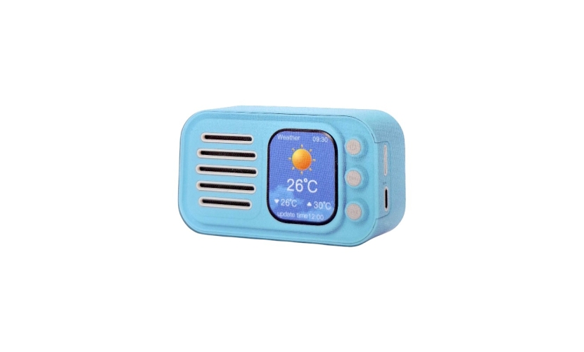 Ασύρματο ηχείο Bluetooth mini, σε μοντέρνο σχεδιασμό, με έγχρωμη ψηφιακή οθόνη αφής, με ρολόι-ξυπνητήρι και πολλαπλές δυνατότητες.