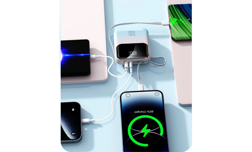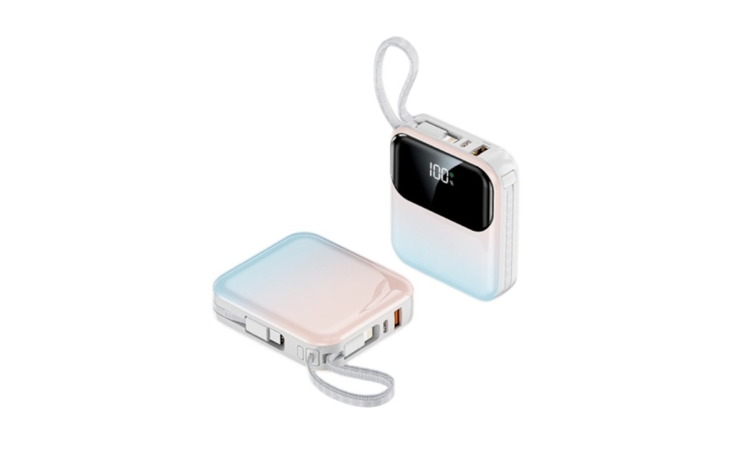 Powerbank χωρητικότητας 10.000mah, με λειτουργία γρήγορης φόρτισης, σε πρακτικό mini μέγεθος για εύκολη μεταφορά παντού. Διαθέτει ενσωματωμένα 2 καλώδια φόρτισης Type-C & Lightning για να μην χρειάζεται να μεταφέρετε ξεχωριστά το καλώδιό σας.