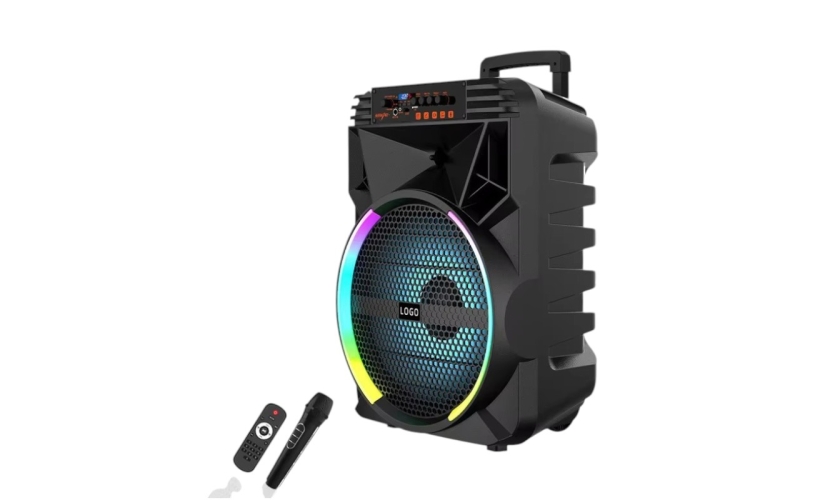 Φορητό ηχείο subwoofer με εξαιρετικής ποιότητας ήχο, εντυπωσιακό φωτισμό LED που προσαρμόζεται στο ρυθμό της μουσικής και πρακτικό σχεδιασμό μεταφοράς. Περιλαμβάνει ασύρματo μικρόφωνo καραόκε και τηλεχειριστήριο για εύκολο χειρισμό.