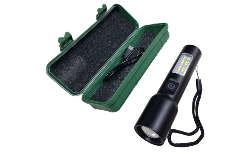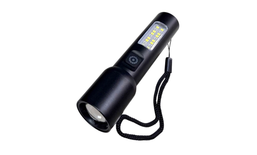 Επαναφορτιζόμενος φακός χειρός LED σε mini μέγεθος, με πλαϊνό φακό, με ισχυρό φωτισμό και μεγάλη αυτονομία μπαταρίας, ιδιαίτερα ανθεκτικός, με εργονομικό σχεδιασμό, ιδανικός για κάθε είδους εξωτερική δραστηριότητα και σπορ.