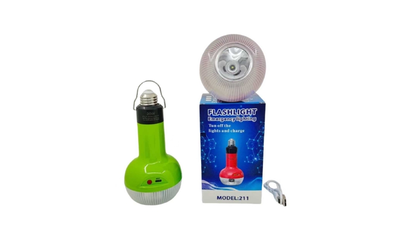 Πρακτικός σχεδιασμός με γάντζο-κρεμάστρα και σπείρωμα E27 που μπορεί να τοποθετηθεί σε υποδοχή λάμπας και να αντικαταστήσει την λάμπα ρεύματος σε περιπτώσεις έκτακτης ανάγκης (απλή τοποθέτηση στην υποδοχή - δεν τροφοδοτείται με ρεύμα), Μπορεί να χρησιμοποιηθεί και ως φακός χειρός, Ισχύς φωτισμού: 20W,Επαναφορτιζόμενη μπαταρία 18650 3.7VΘύρα φόρτισης Type-C (περιλαμβάνεται καλώδιο φόρτισης)Αυτονομία μπαταρίας έως 5 ώρες. Ανθεκτικό περίβλημα ABSΔιαστάσεις 9*17,5 cm.