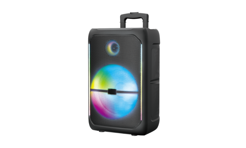 Φορητό ηχείο subwoofer με εξαιρετικής ποιότητας ήχο, εντυπωσιακό φωτισμό που προσαρμόζεται στο ρυθμό της μουσικής και πρακτικό σχεδιασμό μεταφοράς-τρόλεϊ . Περιλαμβάνει 2 μικρόφωνα καραόκε (ενσύρματο και ασύρματο) και τηλεχειριστήριο για εύκολο χειρισμό.