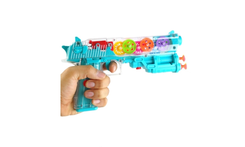Παιδικό ηλεκτρονικό όπλο που εκτοξεύει βεντούζες, με ήχο και φωτισμό LED, σε διαφανή σχεδίαση.