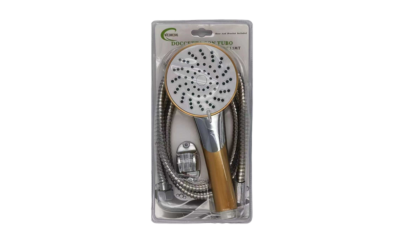 Τηλέφωνο-ακροφύσιο ντουζιέρας με 3 επιλογές πίεσης και σπιράλ σωλήνα μήκους 1.5 μέτρου, με όλα τα παρελκόμενα τοποθέτησης. Εύκολη τοποθέτηση σε όλες τις βρύσες μπανιέρας και ντουζιέρας. Το ακροφύσιο διαθέτει προστατευτικά σιλικόνης στις εξόδους νερού, που αποτρέπουν την συσσώρευση αλάτων. Υψηλή ποιότητα κατασκευής με χρωμέ φινίρισμα, υψηλής ανθεκτικότητας.