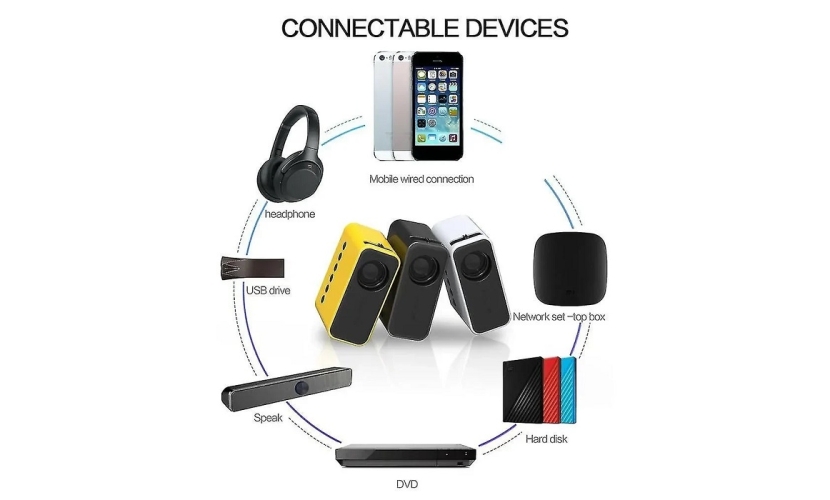 Μέγεθος οθόνης προβολής έως 100"Ο μίνι βιντεοπροβολέας έχει μέγεθος οθόνης προβολής 16~100 ιντσών με απόσταση προβολής 0,5 έως 3 μέτρα.