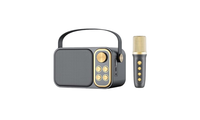 Χαρακτηριστικά: Ισχύς: 10W,Bluetooth 5.0,Θύρες: USB, TF Card (έως 32GB), AUX, Type C, Ενσωματωμένη επαναφορτιζόμενη μπαταρία 3.2V, 1500mAh,Αυτονομία Μπαταρίας ηχείου: έως 5 ώρες,Χρόνος φόρτισης ηχείου: 3 ώρες,Χρόνος φόρτισης μικροφώνου: 1 ώρα,Απόκριση συχνότητας: 20Hz-20KHz, SNR ≥ 115dBΤάση φόρτισης: 5V, 1A Φόρτιση με καλώδιο USB (περιλαμβάνεται),Διαστάσεις: 16*8.5*9.5cm.