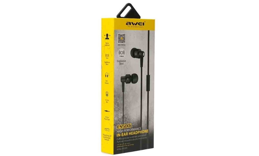 Ενσύρματα ακουστικά ES-500i της Awei με εξαιρετική ποιότητα ήχου και δυνατότητα να απαντάτε στις κλήσεις σας ή να αλλάζετε την μουσική σας με το πάτημα ενός κουμπιού. Είναι ελαφριά για άνετη, πολύωρη χρήση και με εργονομικό σχεδιασμό που εφαρμόζει απόλυτα στο αυτί, για άριστη ηχομόνωση.