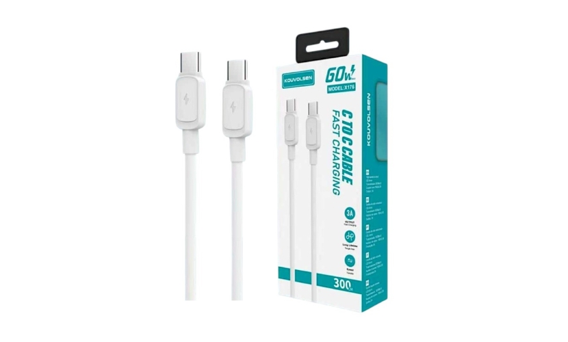 Καλώδιο φόρτισης Fast Charge και μεταφοράς δεδομένων USB Type-C σε Type-C, που προσφέρει εξαιρετικά υψηλές ταχύτητες φόρτισης σε έως και 60W.