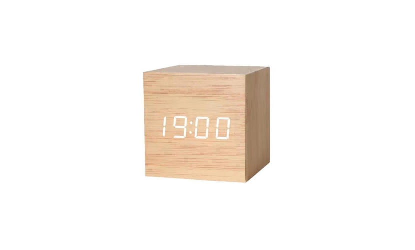 Ψηφιακό ρολόι–Ξυπνητήρι LED, σε ιδιαίτερο σχεδιασμό με εφέ ξύλου. Πρακτικό μέγεθος που μπορεί να τοποθετηθεί παντού και να προσδώσει σύγχρονη νότα στο χώρο σας.